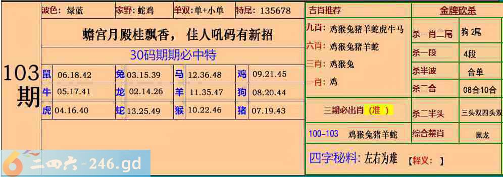 103期:30码期期必中特