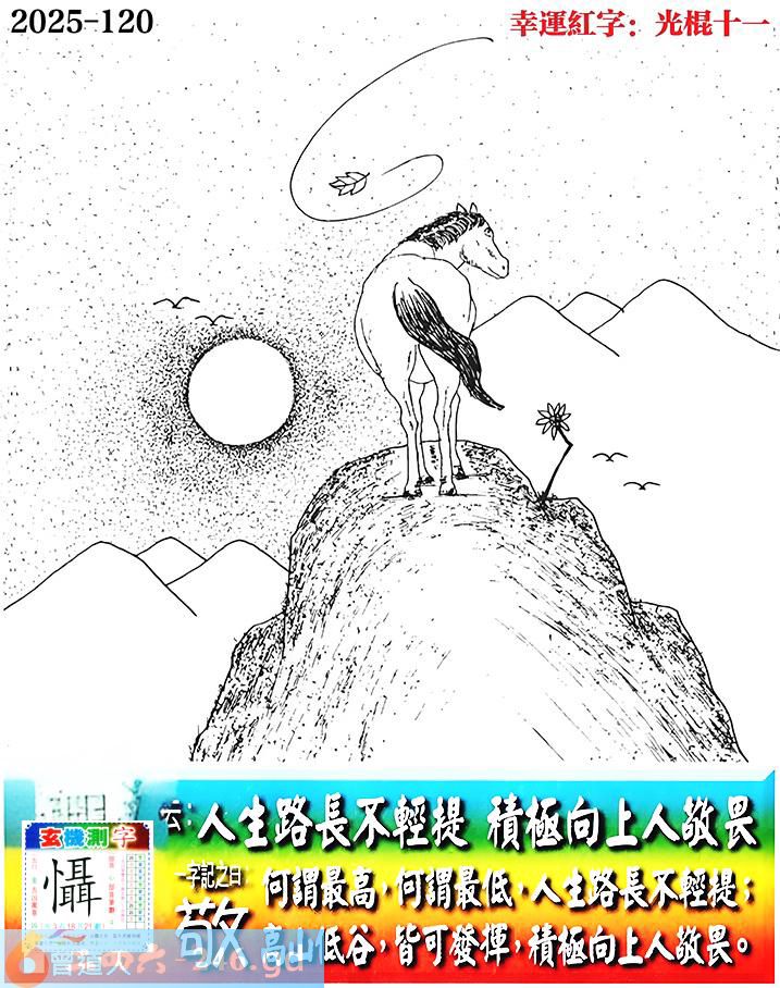120期老版跑狗一字記之曰:【敬】 詩雲:人生路長不輕提,積極向上人敬畏。