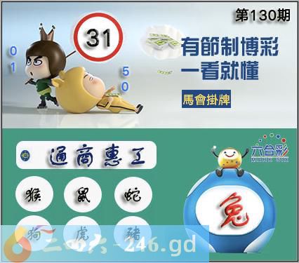130期正版彩图挂:31 爆:兔 挂牌成语:通商惠工 挂牌出肖:猴鼠蛇狗虎猪