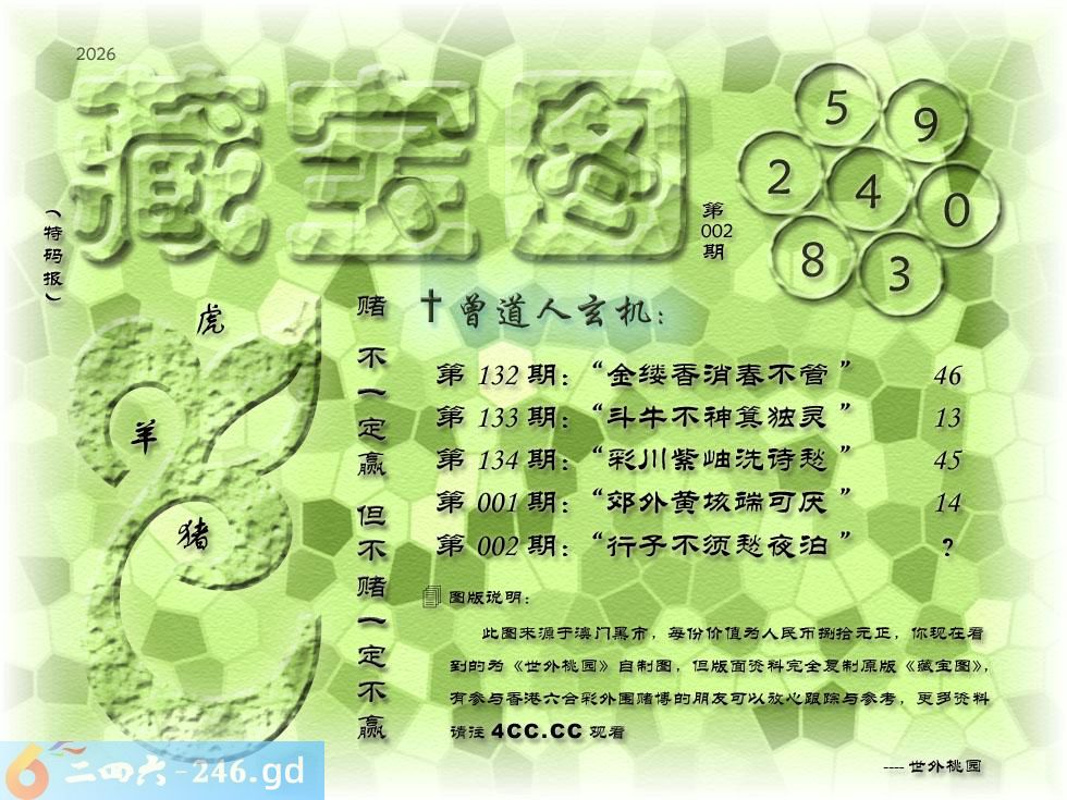 002期藏寶圖 新:行子不须愁夜泊 老:碧瓦参差竹树闲 禁:鸡 禁:1尾 玄機字:《恤》