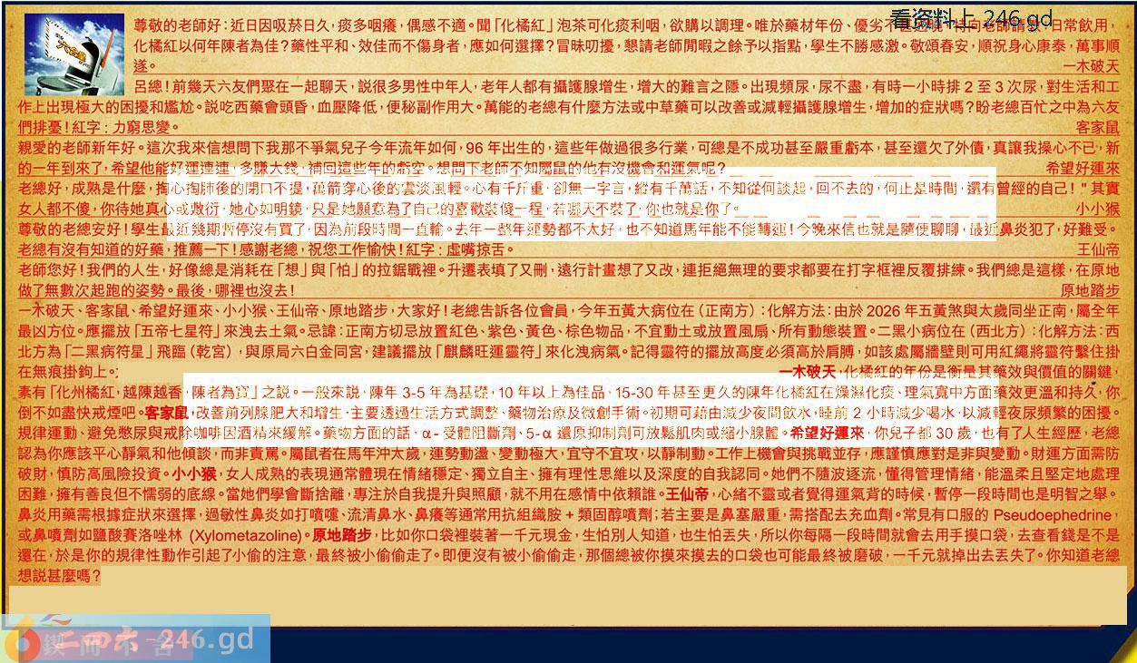 【5】.尊敬的老總安好!學生最近幾期暫停沒有買了,因為前段時間一直輸。去年一整年運勢都不太好,也不知道馬年能不能轉運!今晚來信也就是随便聊聊最近鼻炎犯了,好難受。老總有沒有知道的好藥,推薦一下!感謝老總,祝您工作愉快!紅字:虚嘴掠舌。王仙帝