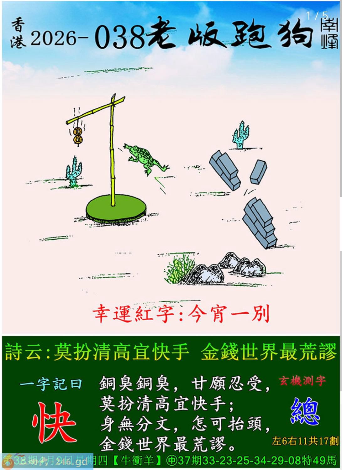 038期老版跑狗一字記之曰:【快】
