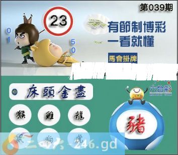 2026039期039期正版彩图挂:23 爆:猪 挂牌成语:床头金尽 挂牌出肖:猴鸡龙鼠狗虎