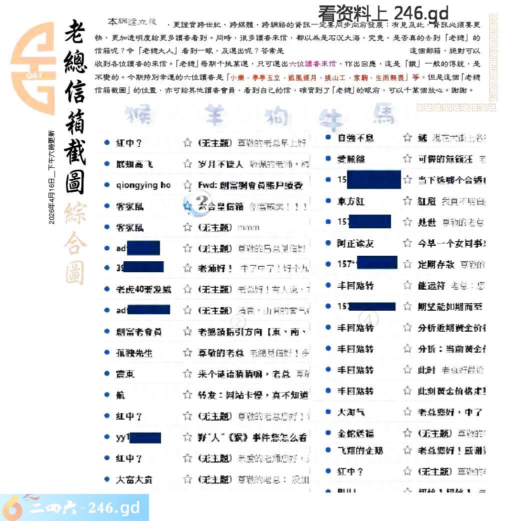 041期:六合皇金句/老总论码/萧公子/林大师/五行夺码/老总信箱截图
